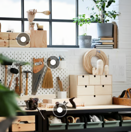 Trata de hacerte un panel en una pared para colgar las herramientas más pequeñas (destornilladores, alicates, cinta métrica ….) para que estén a la vista y ocupen poca superficie. Respecto a las herramientas más pesadas, agrúpalas en cajas. Y para los tornillos, tuercas, tacos, y objetos de ese tamaño, guárdalos en unas cajoneras con suficientes separadores para que todo esté organizado.